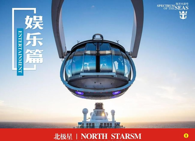 剛剛結束了岸上觀(guān)光, 您有點(diǎn)兒累了?那選擇皇家海洋光譜號上的【南極 球】感受離開(kāi)地心引力的刺激, 或者去【皇家大劇院】看一場(chǎng)頂尖的經(jīng)典歌舞 表演吧,讓您在船上就能看到正宗的百老匯表演。還可以靜靜的在【日光浴場(chǎng)】 享受一個(gè)悠閑的下午, 或者和愛(ài)人去【悅音廳】靜聽(tīng)藍調布魯斯的悠揚, 漫步 舞池!晚上的【 270°觀(guān)影廳】會(huì )為大家提供全息數碼投影, 讓乘客體驗引人入 勝的跨界表演和燈光秀。還可以參加船上的各種娛樂(lè )活動(dòng)、興趣課程、健身運 動(dòng)、游泳、沖浪、登上北極星等。還可以看電影、或者到娛樂(lè )場(chǎng)開(kāi)心一把。