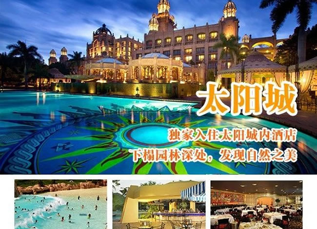 酒店早餐。前往機場(chǎng),搭乘航班飛往約堡。驅車(chē)前往南半球最大的娛樂(lè )中心-太陽(yáng)城。不曾身臨其境,便無(wú)法真正理解太陽(yáng)城給人所帶來(lái)的震撼。將古老傳說(shuō)的神秘滄桑、非洲大陸的野性粗獷和現代生活的便利舒適那樣完美地融合在一起。你可以在失落城探尋非洲大陸上最古老的秘密,根據神話(huà)傳說(shuō)興建的地震橋以及豪華賭場(chǎng)、著(zhù)名的建筑-失落城等。這里有清幽的湖光山色,無(wú)數的珍禽異草,游人可漫步其中享受。(含自由活動(dòng)游覽時(shí)間約3小時(shí)) 晚餐后,入住太陽(yáng)城內豪華酒店,您可于太陽(yáng)城內賭場(chǎng)大顯身手。溫馨提示:約堡-太陽(yáng)城,約210公里,車(chē)程約3小時(shí)